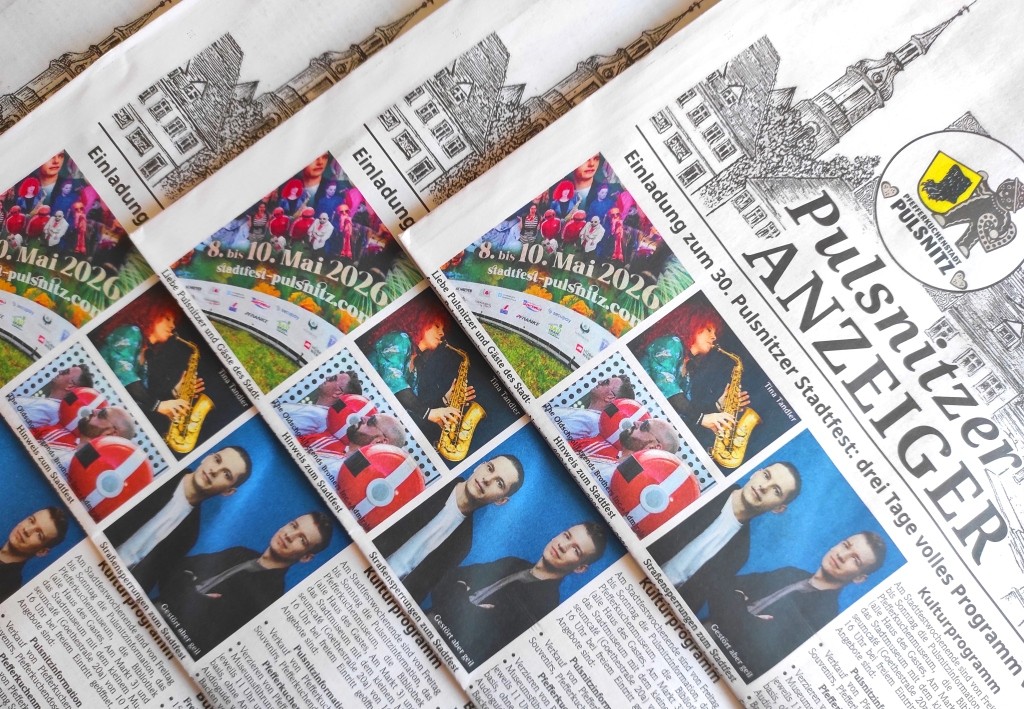 [23.4.2026] Die Mai-Ausgabe des Amtsblattes „Pulsnitzer Anzeiger“ erscheint am 25. April. Ausgewählte Themen sind der Saisonstart im Walkmühlenbad am 18. Mai (S. 2), der Aufruf zur Gewinnung ehrenamtlicher Wanderwegewarte (S. 2), der Brettspiel-Abend in der Stadtbibliothek am 29. April (S. 5), der 17. Tag der Parks und Gärten (S. 7) sowie das Austauschforum Kinder- und Jugendarbeit am 27. April (S. 12).